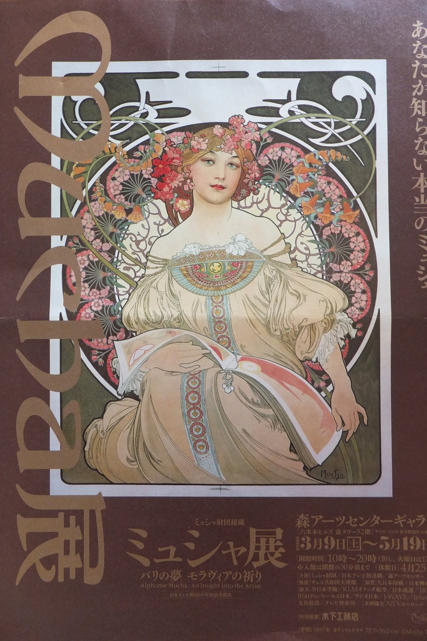 ミュシャ展って書いてある!すごい。今朝話したばかりなのに、こんなのがあったんですか。これ、どこでやるの?六本木ぃ??!」